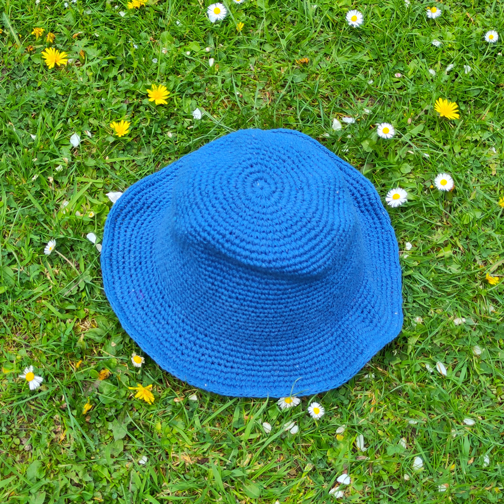 A light and comfortable crocheted cotton hat which is wired to ease shaping after it has been folded in a bag or suitcase.