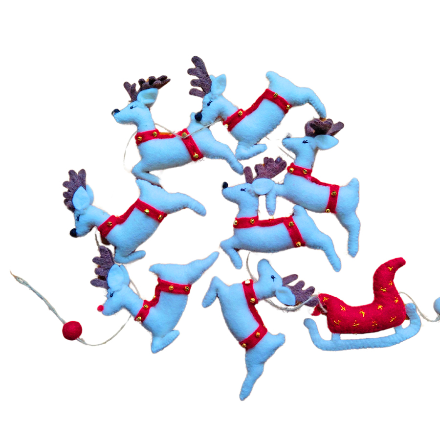 A very popular garland comprising 7 reindeer pulling a sleigh.